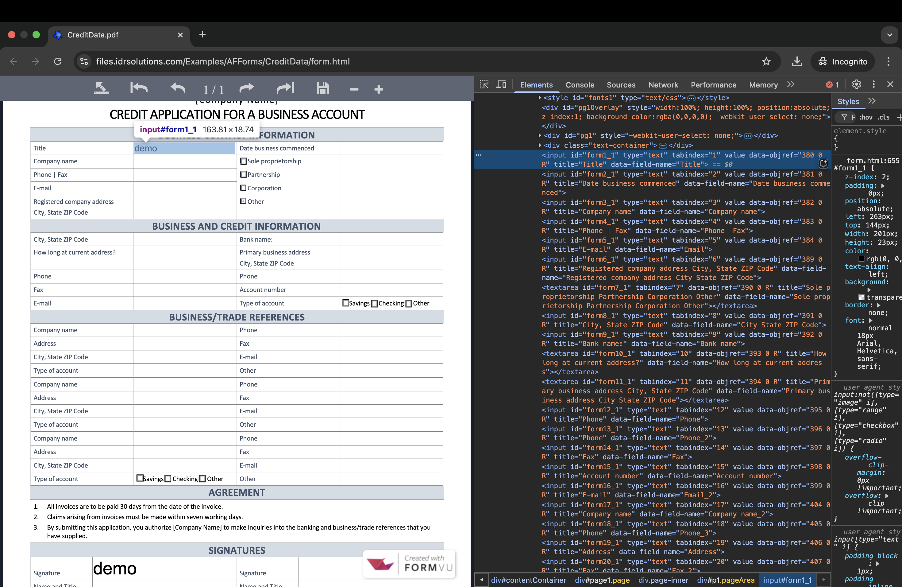 By converting PDF forms to HTML forms with FormVu, the PDF forms can be easily integrated into complex HTML Web Apps for display. The file can then work consistently across all modern browsers and on mobile, tablet and desktop. This is exactly what we are doing on our website!